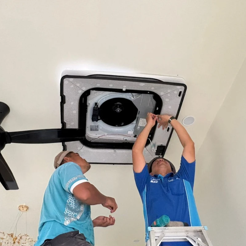 Pasukan aircond servis kami janjikan aircond anda sejuk sebelum siap kerja.